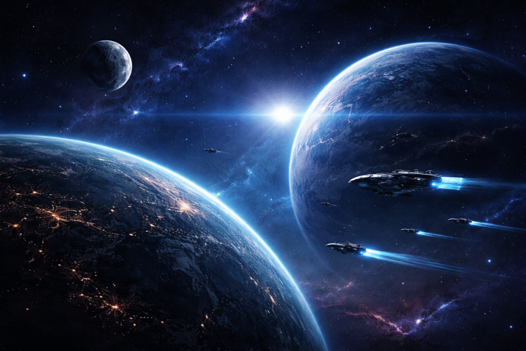 The Chrome Abyss is a fractured future shaped by power, adaptation and survival — a world where hybrid humans have spread across planets and galaxies in their struggle to persist. At its core sits a deck-building card game, driven as much by narrative and choice as by strategy. On this page, you’ll get a first look at the world we’re building, the kinds of characters who inhabit it, and how play unfolds through cards, chance and hidden intent.